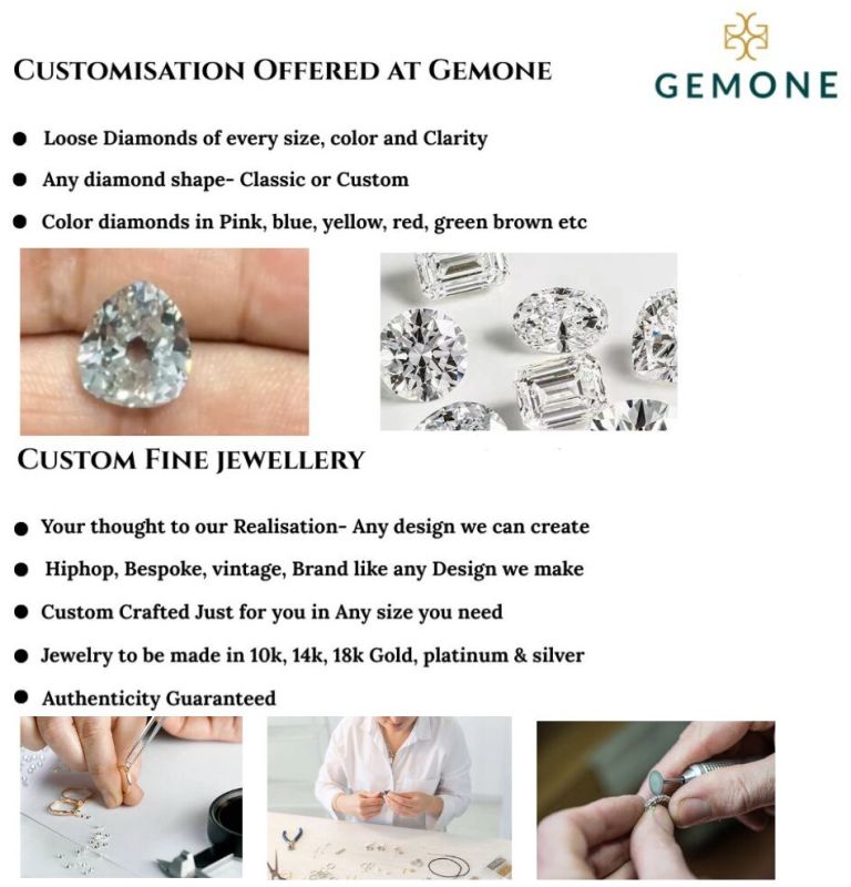 Yes, Gemone diamond offers Customization with reference to shape, size and quality of diamonds. We can provide you diamonds based on specific jewelry requirements.